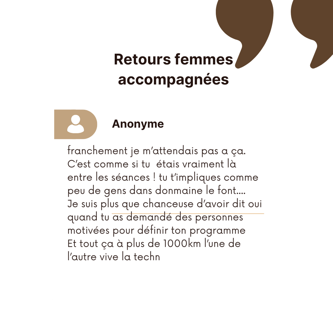 Avec un suivi personnalisé entre chaque séance, tu n’es jamais seule.